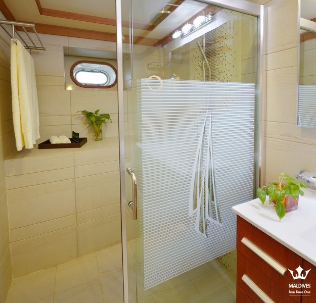 Badezimmer der Deluxe Kabine am Oberdeck der Blue Force One