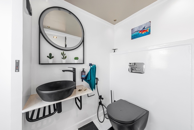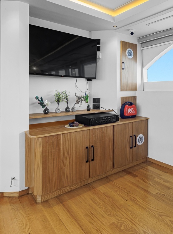An Bord gibt es 220 V und normale EU-Steckdosen. WiFi ist verfügbar, aber ihr habt nicht bei allen Tauchplätzen Empfang.