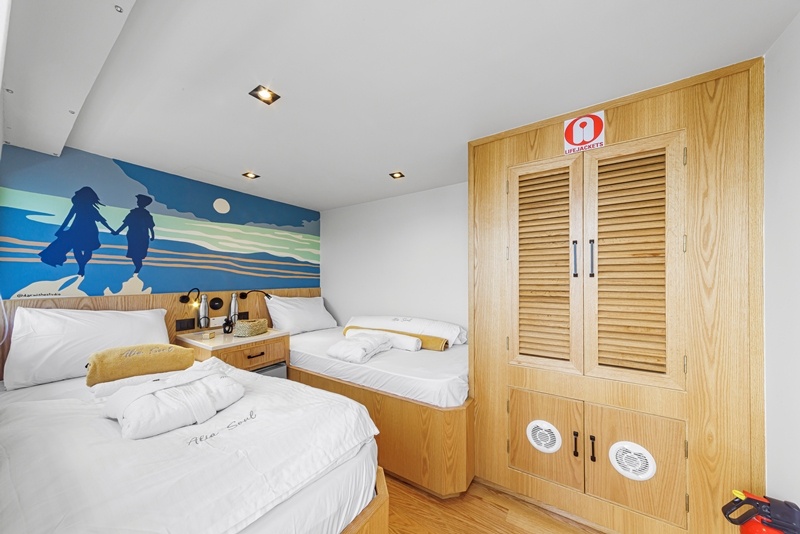 Auf der Alia Soul gibt es 10 Kabinen, in denen die 20 Gäste bequem Platz finden. Hierbei gibt es:
