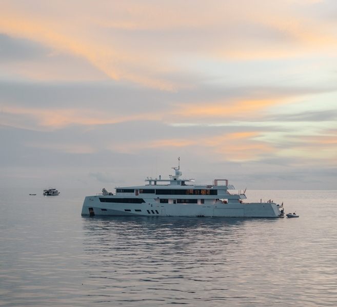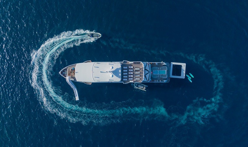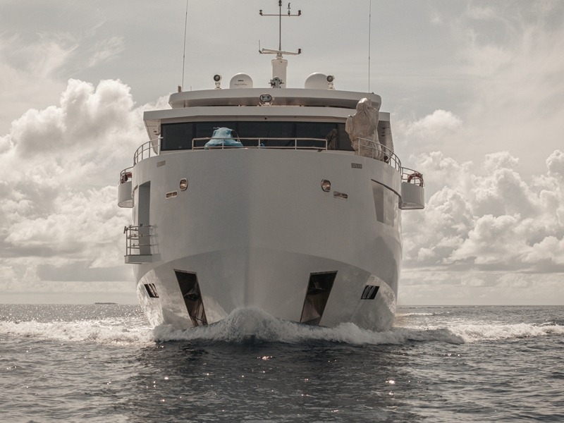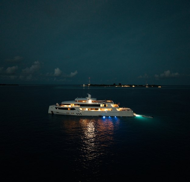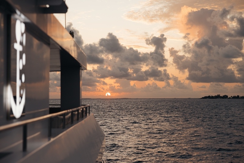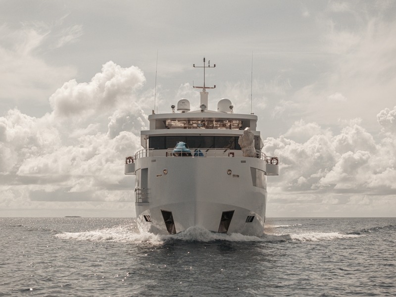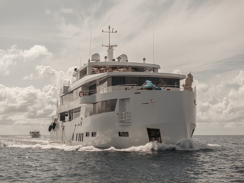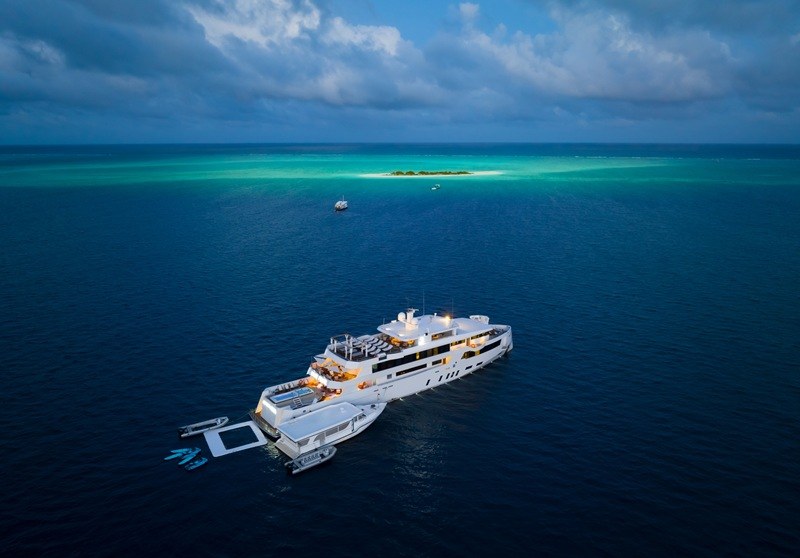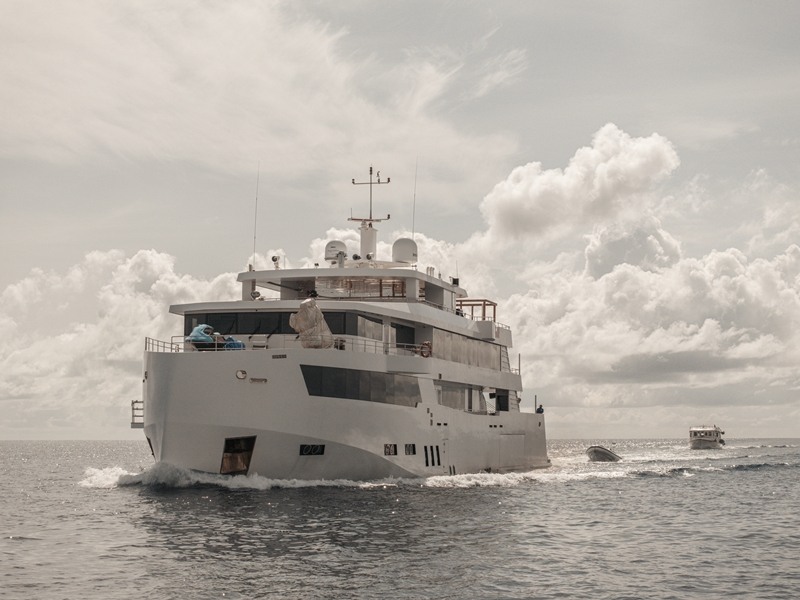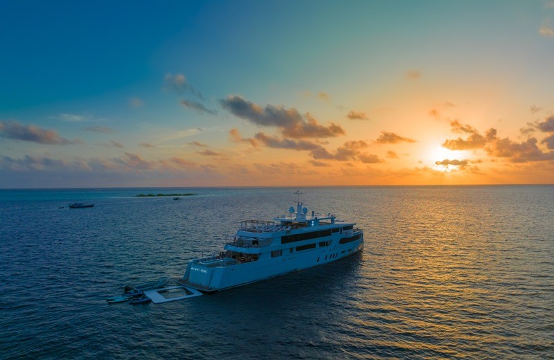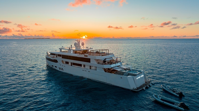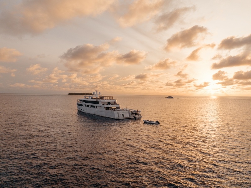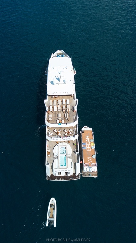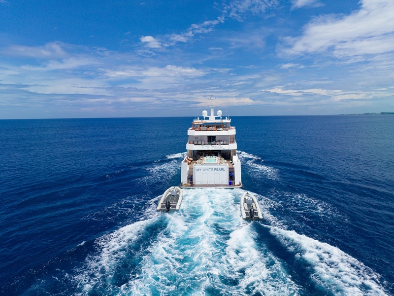 White Pearl mit Zodiacs in Fahrt auf den Malediven