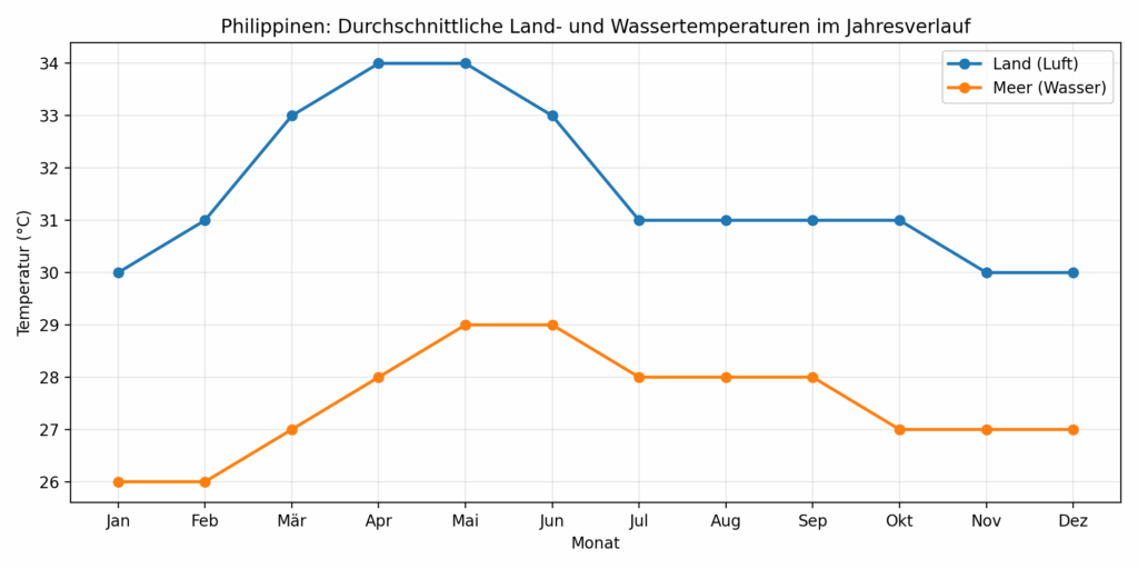 - Durchschnittstemperaturen: etwa 25–32 °C