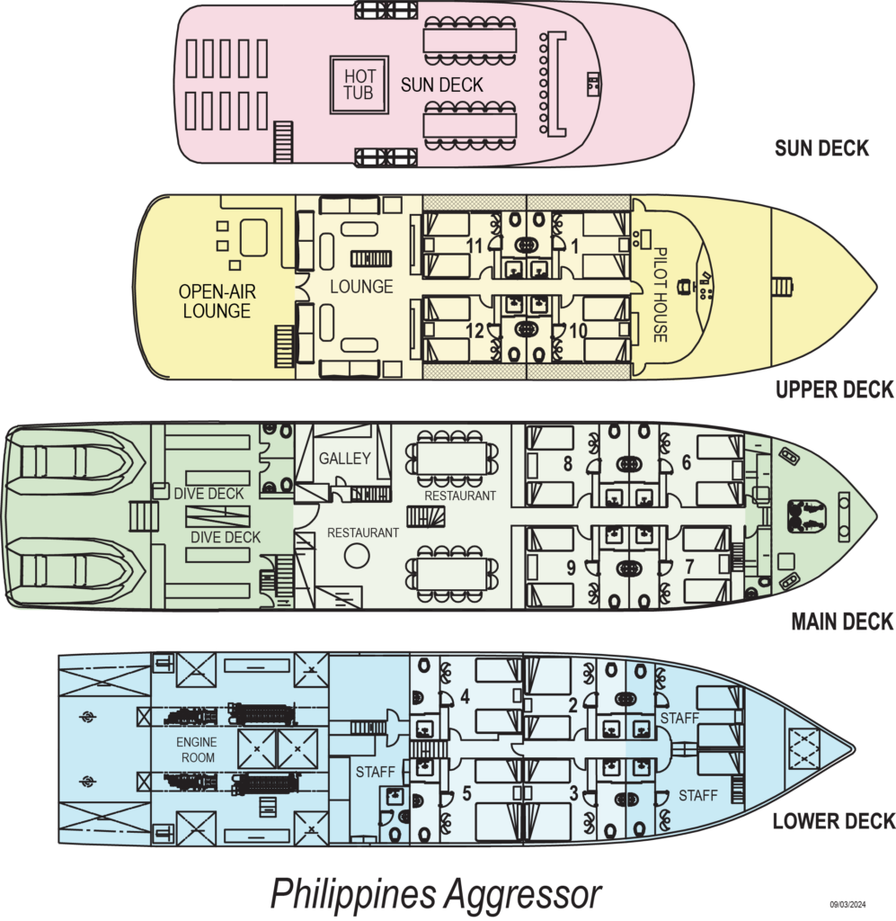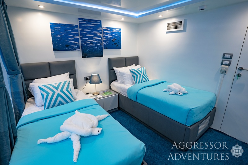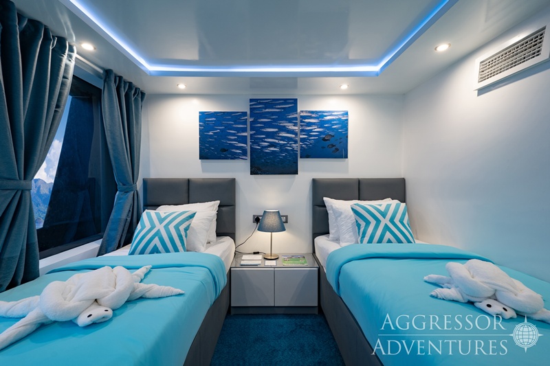 An Bord der Philippines Aggressor gibt es 12 Kabinen, in denen die maximal 24 Gäste bequem Platz finden. Hierbei gibt es: